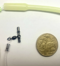 Each critical connection point has been crimped to avoid reducing leader strength with Knots. The Branch swivel used will eliminate any twist ups and is crimped into a suitable position to keep the hook from tangling with your main line. Also maintains correct separation between hooks on this 2 hook rig.