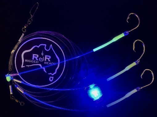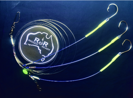 All of my rigs are made to enable to connection to another rig via coast lock snaps and swivels. (all inbuilt) This enables 3-6-9 rig combos. (please check your states rules). Rigs are made to maintain 1 mtr separation between hooks no matter how many rigs and what combos you connect supplied by Rigged N Ready.