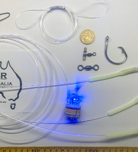 A quality, 3 hook Deep Drop Rig, bench crimped at each point 350lb all the way through. Hook traces (30cm) are Japanese Fujiyama Flurocarbon and fluoresce in UV light (the last remaining light in the deep) The backbone of the rig is 350lb Japanese Fujiyama Mono. All line used is of commercial grade and used in the longline industry.