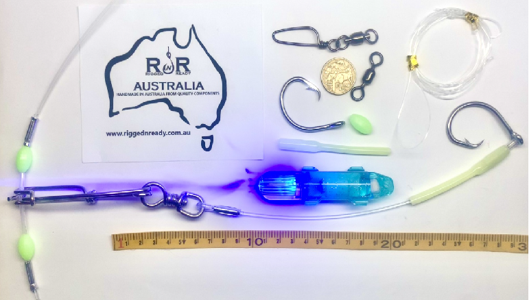 If your fishing 3-6-9 hook rigs why not add a DD-13 Flashing 22cm light up squid, or a         DD-12 Light up ultimate squid into the mix. They are made to go onto this rig.