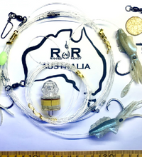 A rig designed for medium depth waters 60-200m and beyond. Suitable for most bottom demersal species including but not limited to Snappers, Pearl Perch, Flametail, Goldband, Trumpeter etc, anything really. Everything eats squid.