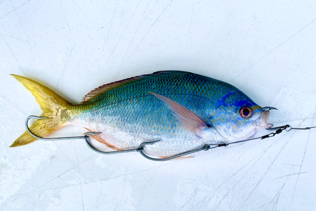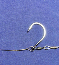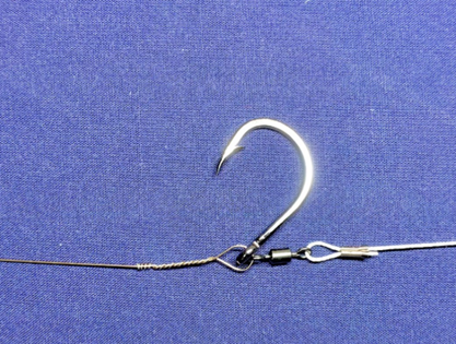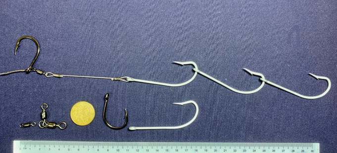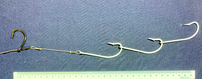 TRIPLE 8/0 VMC O’SHAUGHNESSY HOOKS AND 8/0 LIVEBAIT HOOK ON 105LB WIRE TO 90LB JAPANESE MONO