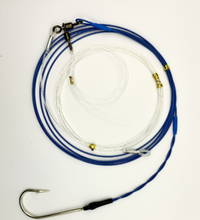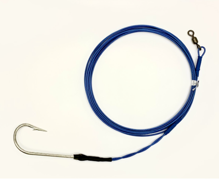 A high quality bench swaged Shark Rig Suitable for medium to large sharks. Great for Bronzes, Bull Sharks and Hammerheads. Designed to be 6 M overall with 3m wire and 3m Mono. This is to keep the weight down for drone deployment and also reduce line wear on the bottom and break offs with the extra 3M of 300lb mono leader. Ideally deployed by Drone or Tow out methods.