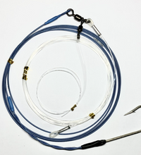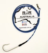 Made from nylon coated Stainless steel wire and Fujiyama Mono, easy to grip when tracing these sharks. Hooks have been heat shrunk to keep them in an ideal position for the best hook up rates. All wire crimps have been heat shrunk to minimise any chance of mono damage and cut offs.