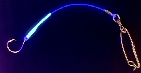 This replacement/spare clip leaders are made from commercial grade 350lb Fujiyama fluorocarbon leaders. The Fluorocarbon leaders are chaffe protected with lumo sleeves and nylon tube, all commercial grade and standard. This chaffe protection system is whats used in the longline industry so you you know its up to the task. (These are Spare / Replacement clips, not a whole rig)