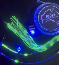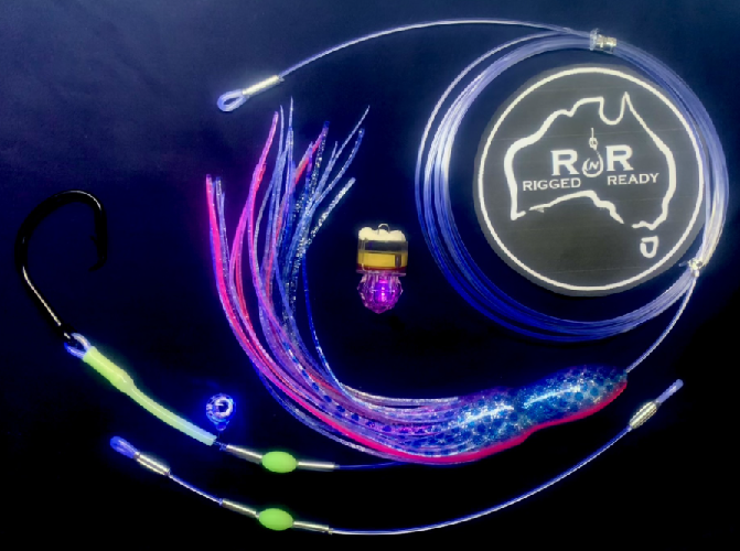 Included is 1x diamond flashing light, add as many as you need. I have also included a small flashing blue light that sits inside the squid slightly illuminating it to imitate that pulsing colour change that deepwater squid do thus making it appear alive.. This rig can also be used for different bait types: Fresh Fillets, Whole baitfish, Whole Gemfish etc. Just apply the same process below for different baits as required.