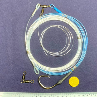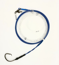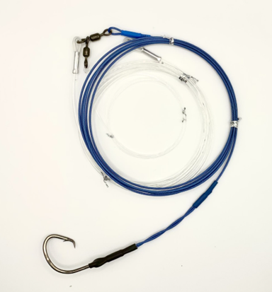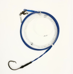 A high quality bench swaged Shark Rig Suitable for smaller to medium sharks. Great for Bronzes, Bull Sharks and Hammerheads. Designed to be 6 M overall with 3m Wire and 3m Mono. The mono both reduces the drone payload and also reduces the chance of wear and breakoffs. Ideally deployed by Drone or Tow out methods.
