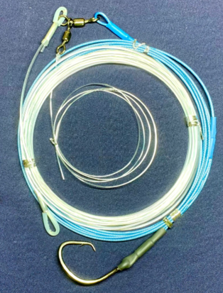 Made from nylon coated Stainless steel wire and Fujiyama Mono, easy to grip when tracing these sharks. Circle Hooks have been heat shrunk to keep them in an ideal position for the best hook up rates. All wire crimps have been heat shrunk to minimise any chance of mono damage and cut offs.